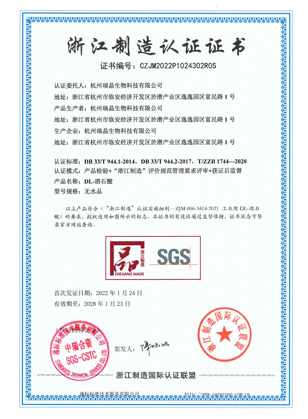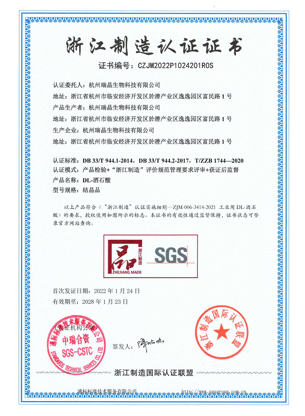 ◆ 2014年制定《工业用酒石酸钾钠》HG/T4791-2014和《工业用DL-酒石酸》HG/T4792-2014行业标准;